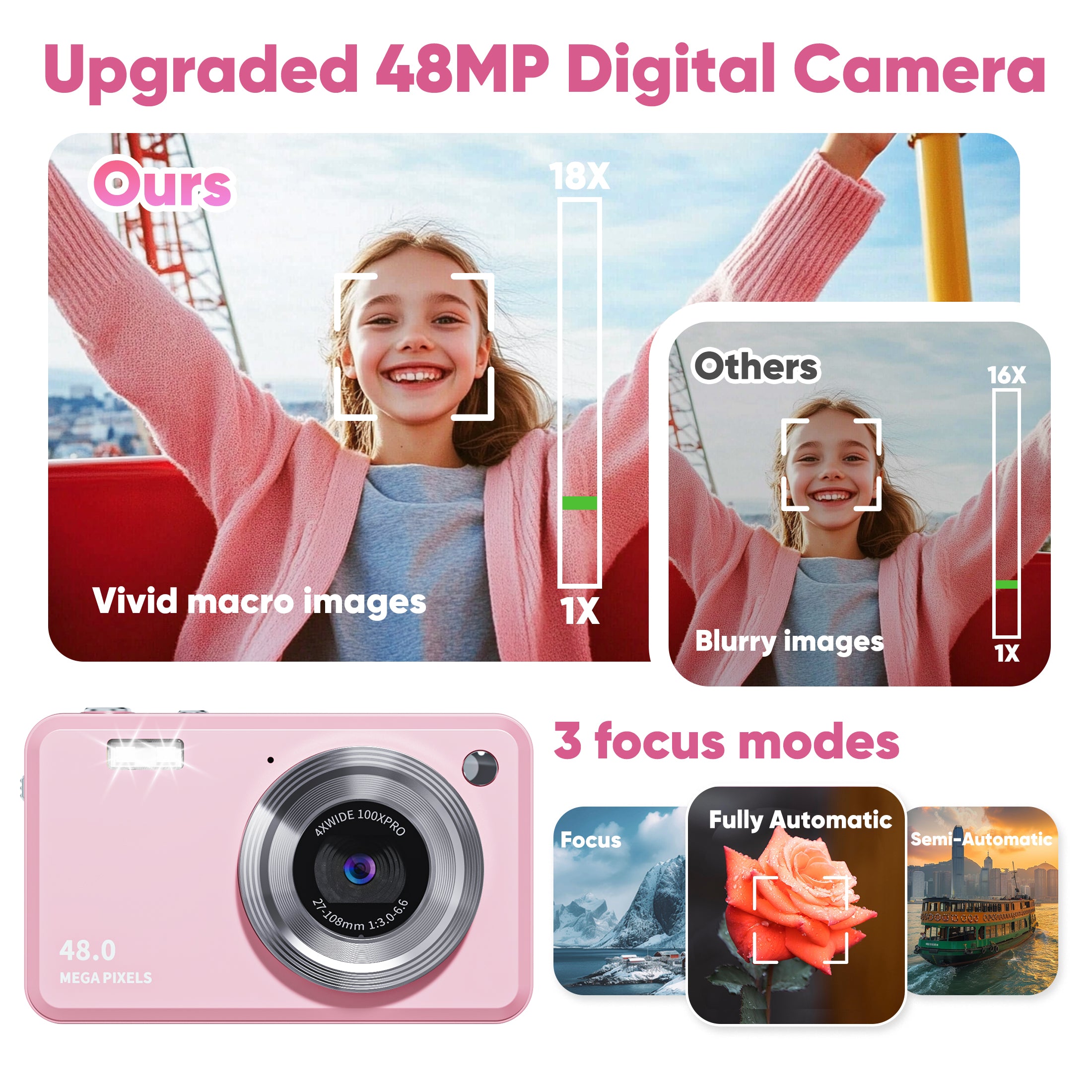 【Multifunctional Digital Camera】Seize life's most exhilarating moments in vivid detail with our Full HD 1080P video and 48MP photo digital camera. It's packed with features like fill light, continuous shooting, interval shooting, selfie, and beauty modes, providing a user-friendly entry into the world of portable photography for beginners.