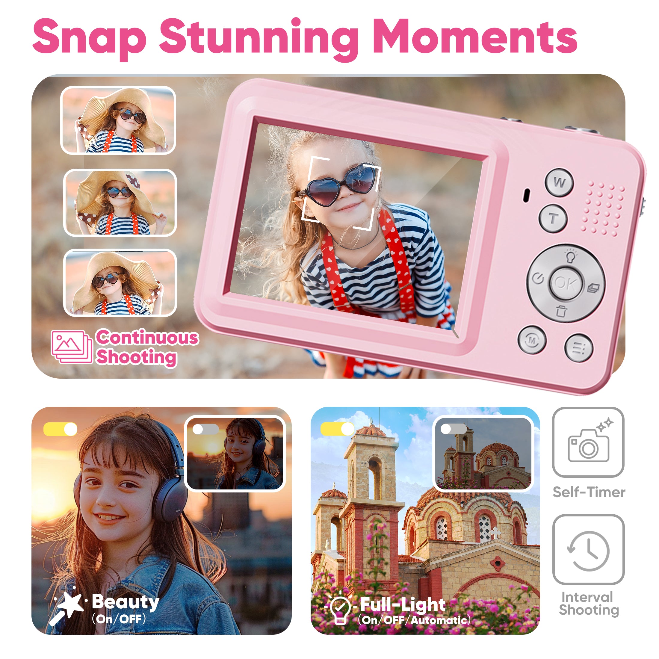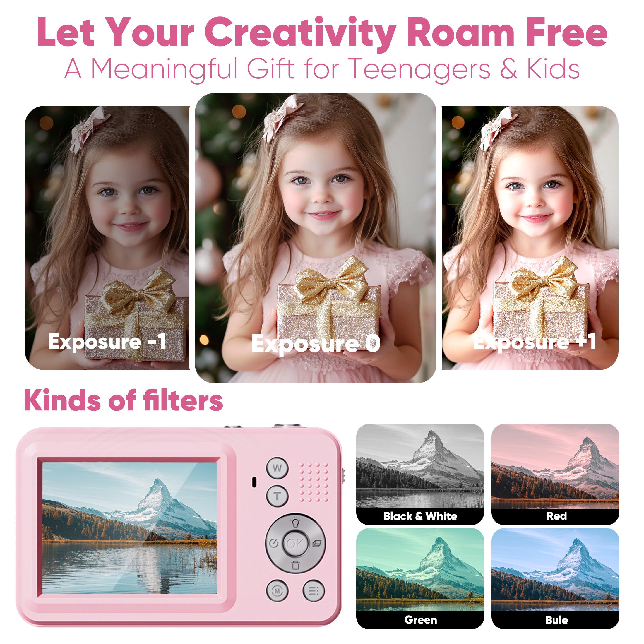 【Ideal Gift for Kids & Teens】This cost-effective, easy-to-use digital camera is perfect for children aged 8-15. It's simple to operate, encouraging kids to explore nature's beauty and develop a passion for photography, making every snapshot a step towards creativity.